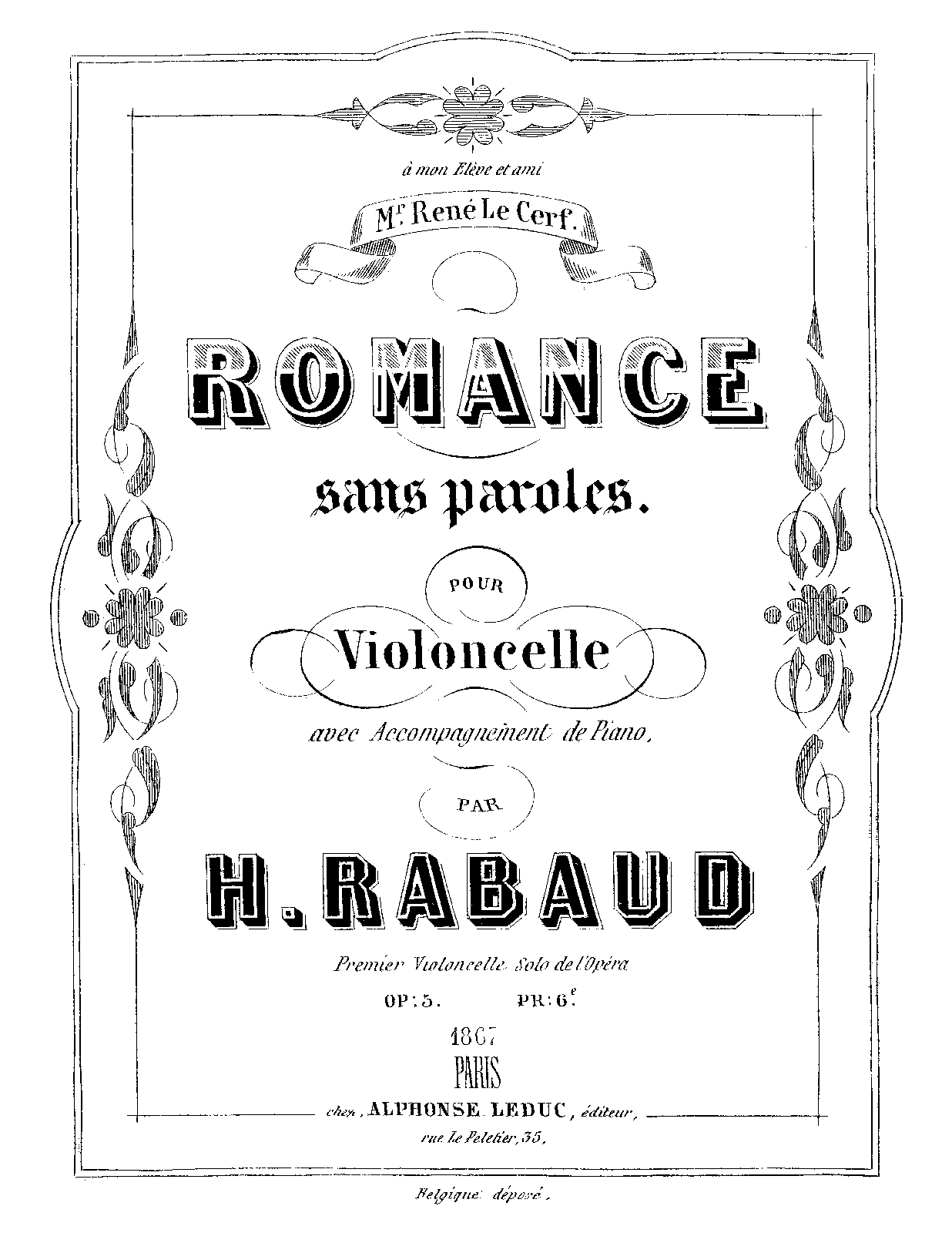 | Alternative. Title | Romance sans paroles pour violoncelle avec accompagnement de piano |