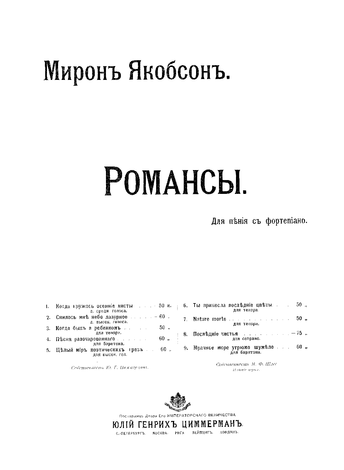 | Genre Categories | Romances; For voice, piano; For voices with keyboard; |