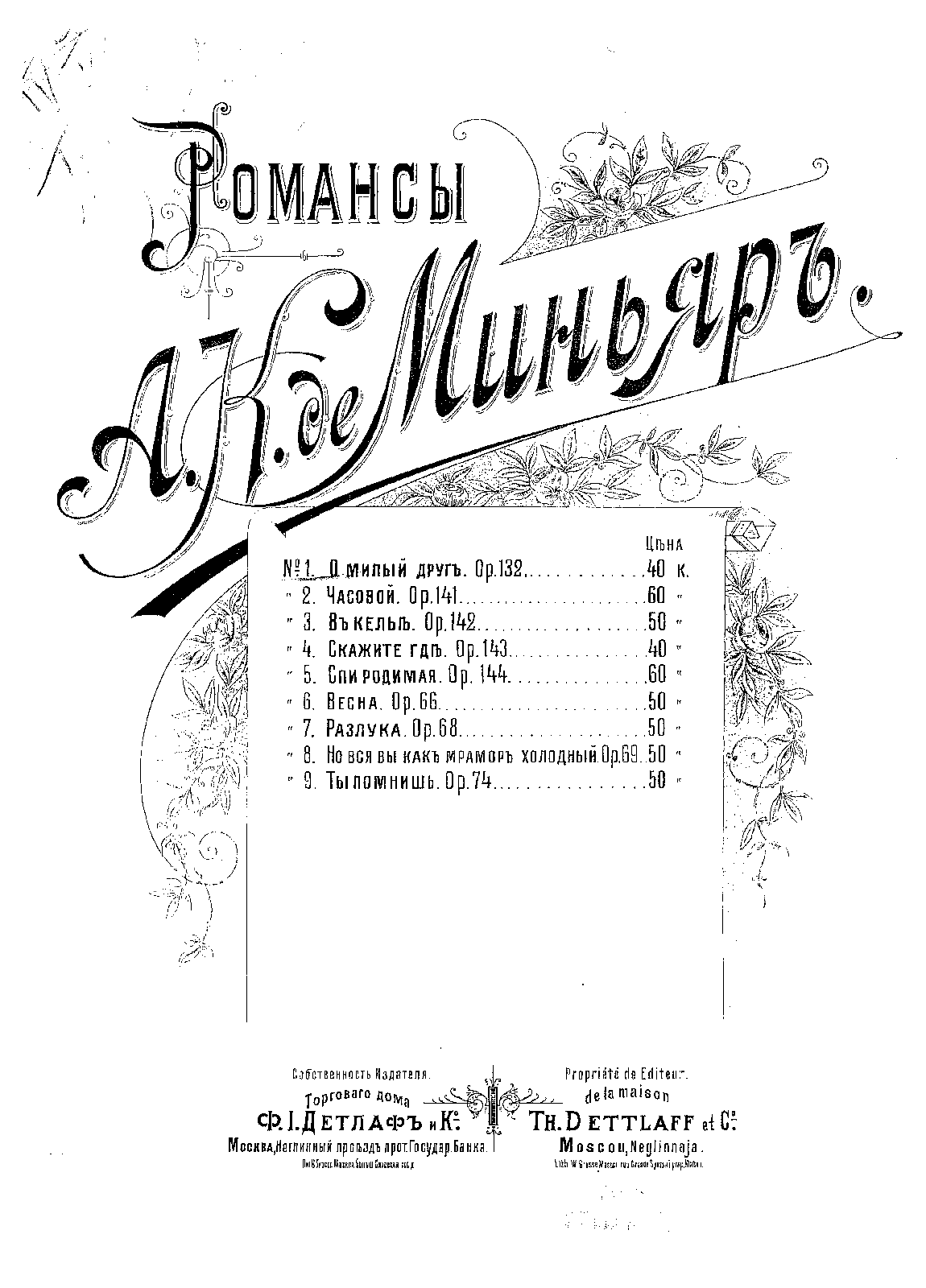 | Genre Categories | Romances; For voice, piano; For voices with keyboard; |
