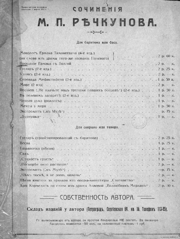 ⇒ 6 more: 4. Узник • 5. Серенада Мефистофеля • 6. Море • 13. Весна • 16. "Стихает грусть" • 17. "Поскорее окно раствори"