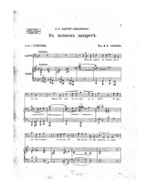 | Dedication | 2. К. Т. Серебрякову; 5. Михаилу Фёдоровичи Швец; 6. Константину Николаевичу Ливанскому; 8. К. Н. Кедрову-Ливанскому (K. N. Kedrov-Livansky), 16. Клавдии Ивановне Вронской; 17. Леониду Фёдоровичу Сущинскому |