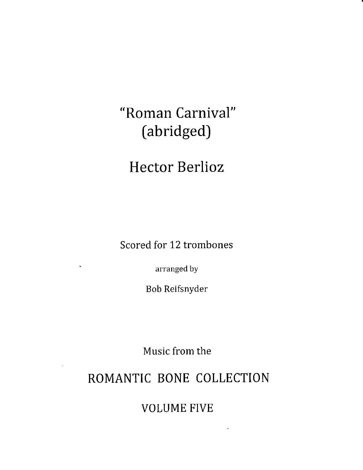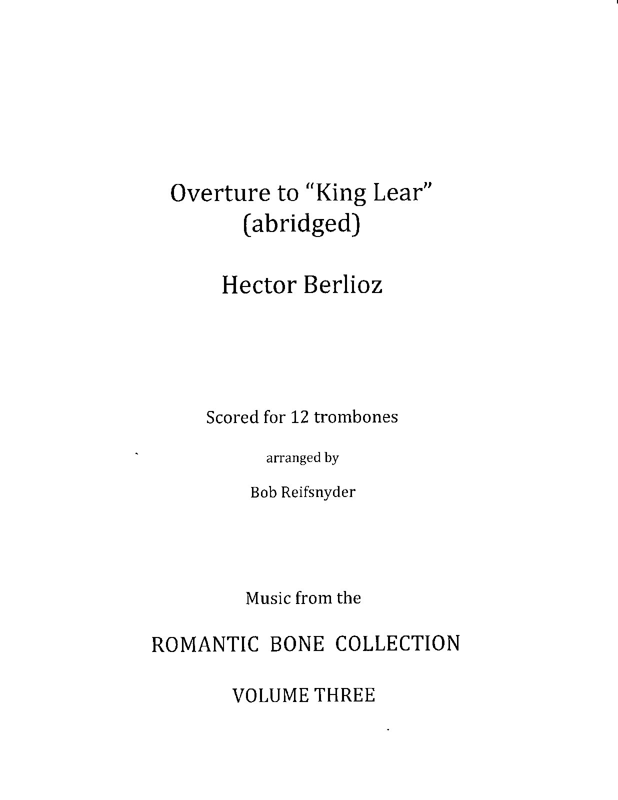 | Alternative. Title | Abridged works by Berlioz arranged for three alto, six tenor and three bass trombones |