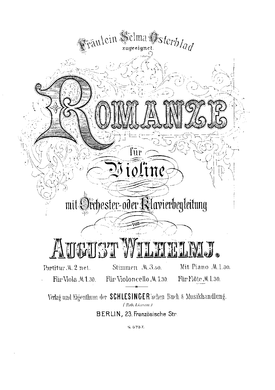 | Dedication | Fräulein Selma Osterblad zugeeignet |