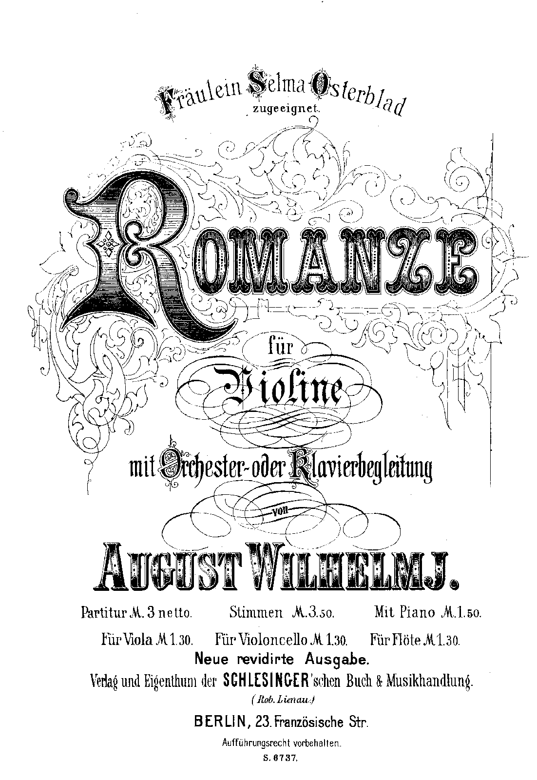 | Genre Categories | Romances; For violin, piano; Scores featuring the violin; |