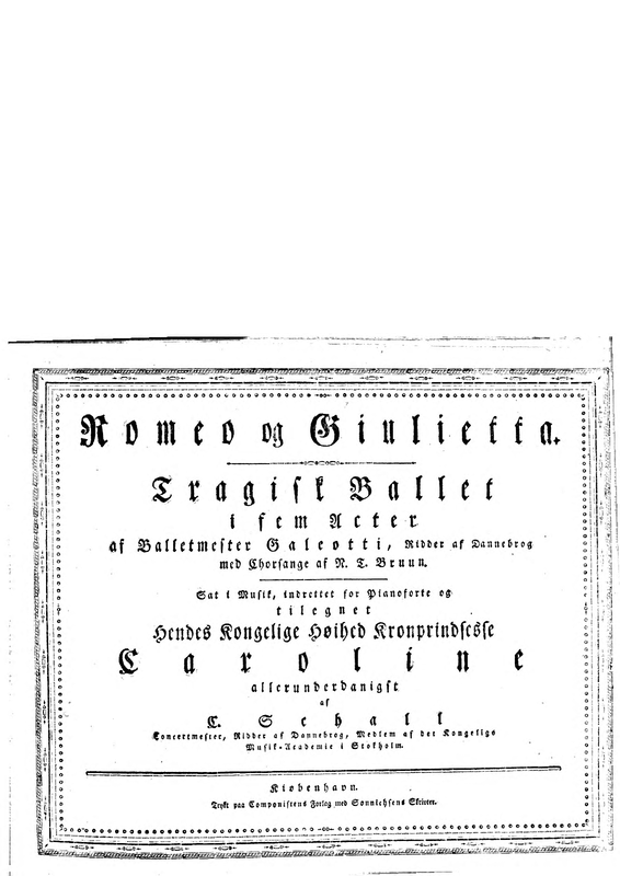 | Alternative. Title | Romeo og Giulietta. Tragisk Ballet i fem Acter af Balletmester Galeotti, Ridder af Dannebrog med Chorsange af N. T. Bruun. Sat i Musik, indrettet for Pianoforte ... af C. Schall Romeo & Juliette |