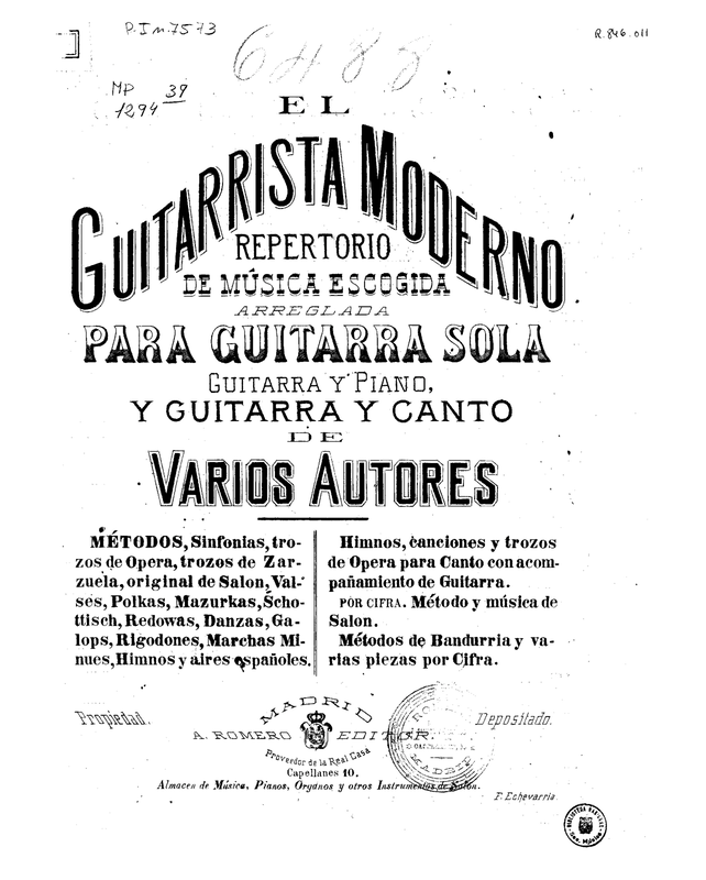 | Genre Categories | Pieces; Works with undetermined instrumentation; For guitar (arr); |