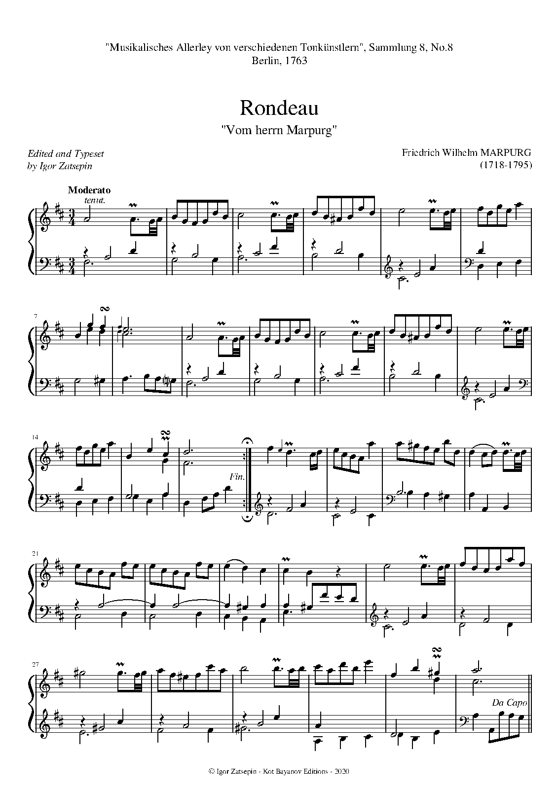 | Extra Information | "Musikalisches Allerley von verschiedenen Tonkünstlern", Sammlung 8, No.8 |
