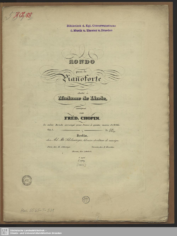 Publisher. Info. Berlin: Ad. Mt. Schlesinger, [1835]. Plate S. 2019.