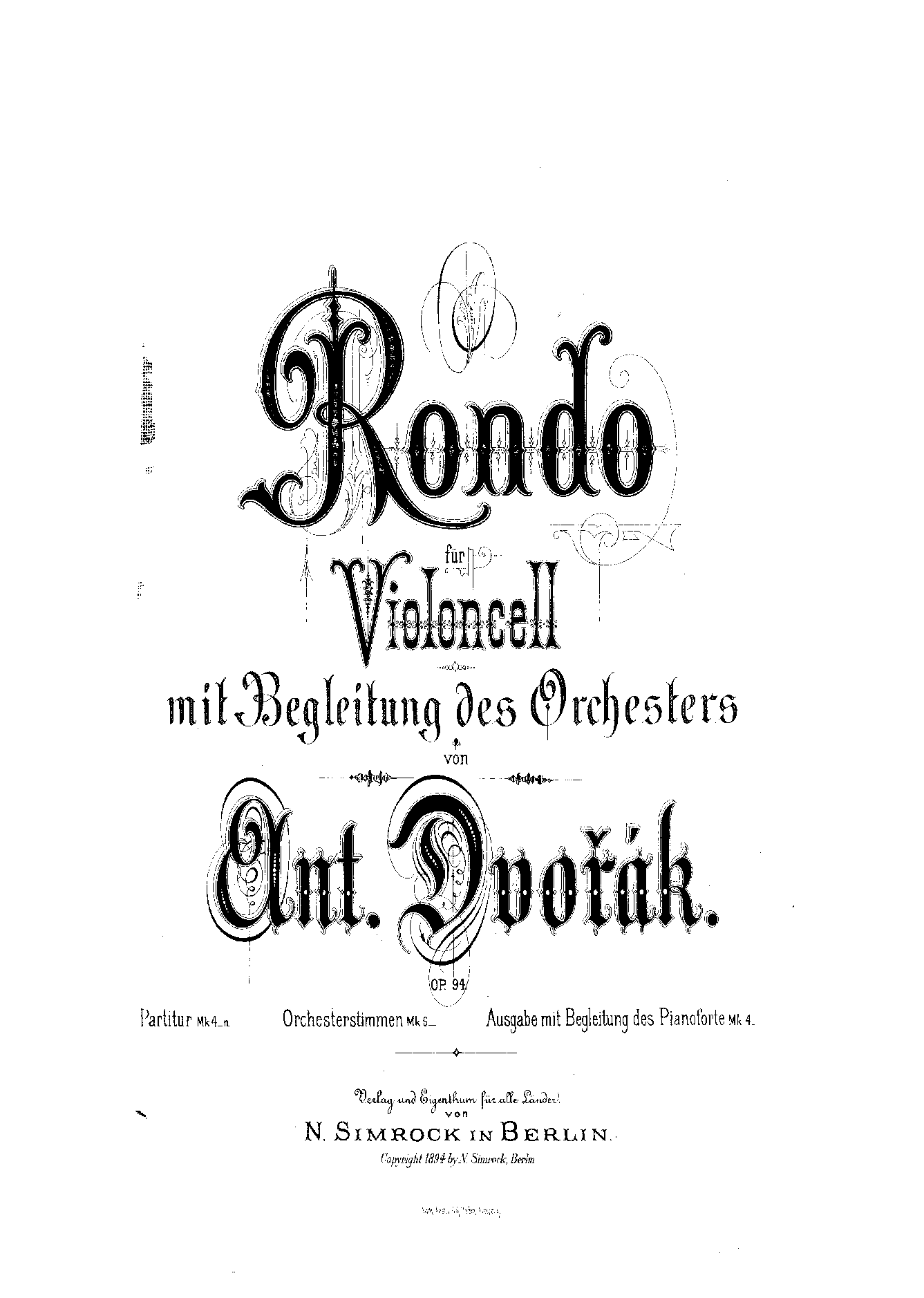 | Opus/Catalogue NumberOp./Cat. No. | Op.94 ; B.171 (cello and piano), B.181 (cello and orchestra) |