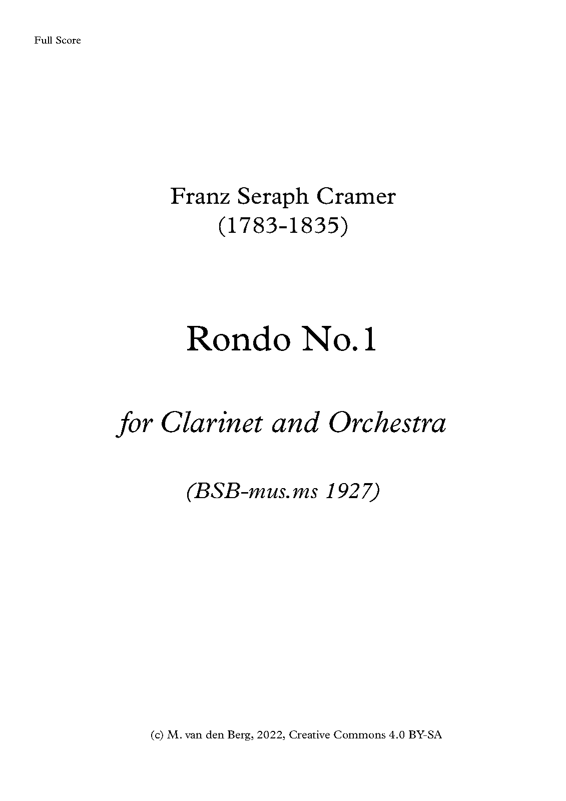 | Genre Categories | Rondos; For clarinet, orchestra; Scores featuring the clarinet; |