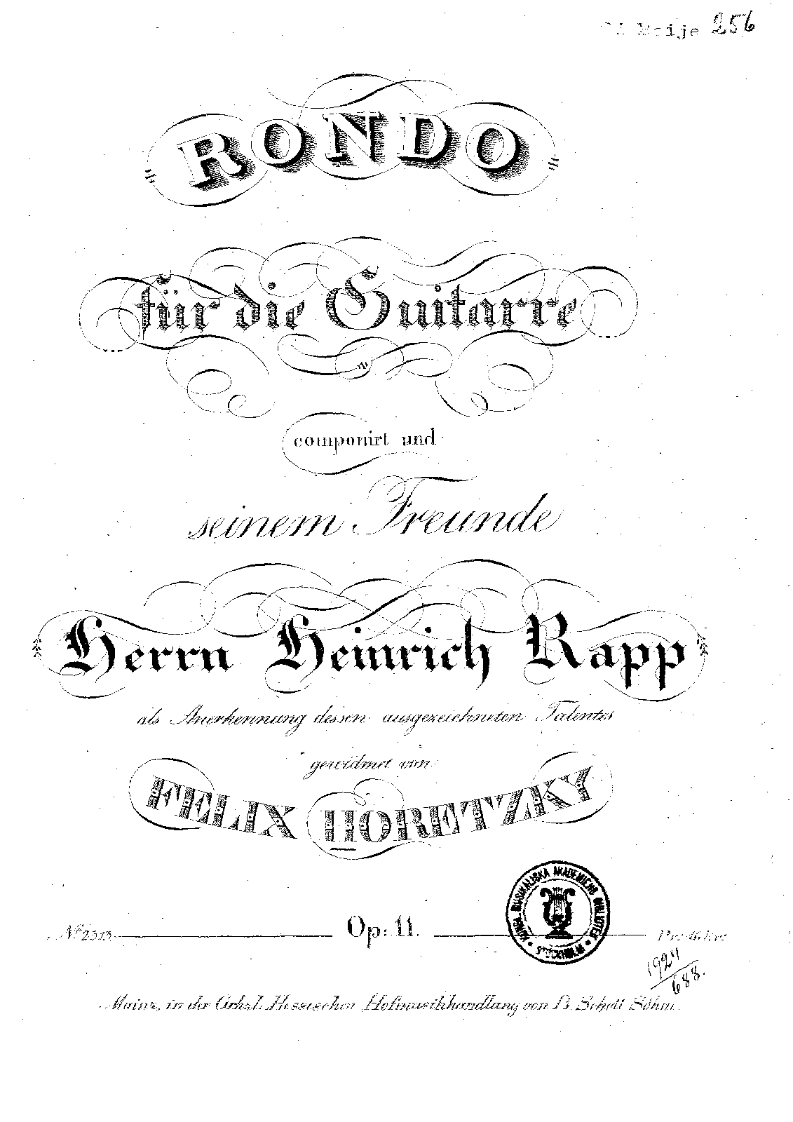 | Dedication | Componirt und seinem Freunde Herrn Heinrich Rapp als Anerkennung dessen ausgezeichneten Talentes gewidmet |