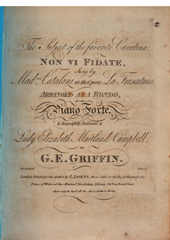 | Alternative. Title | The Subject of the favorite Cavatina, Non vi Fidate, sung by Madme. Catalani in the Opera La Frascatana [by G. E. Ferrari] Arranged as a rondo for the Piano Forte |