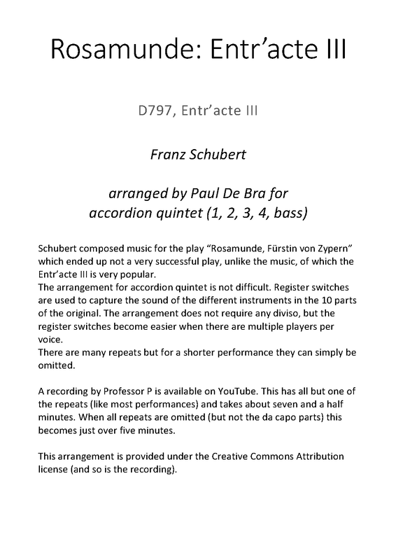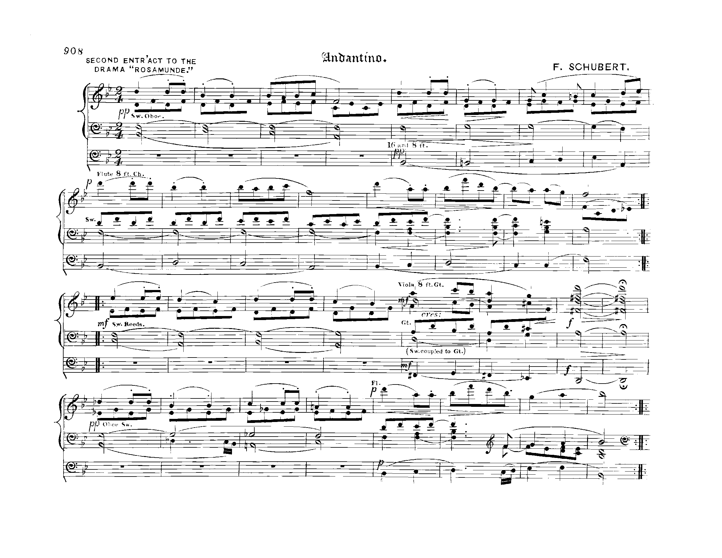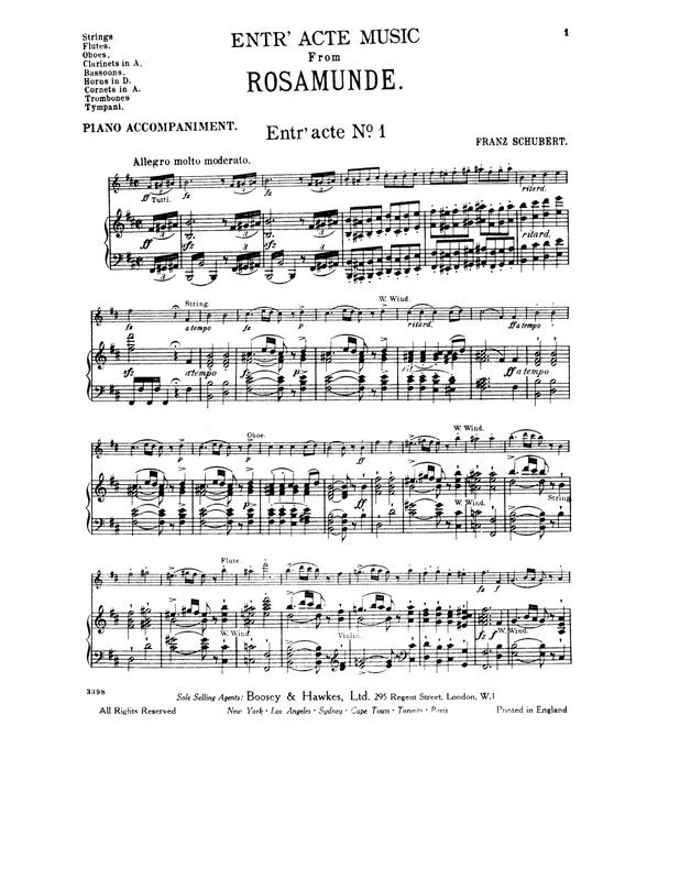 | Related Works | 4 Impromptus, D.935: theme from Rosamunde used in No.3 String Quartet No.13, D.804: theme from Rosamunde used in the Andante Symphony No.8, D.759: Conjecturally, finale originally composed for this symphony ended up as 1st (B minor) Entr'acte (No.1) to this incidental music. |