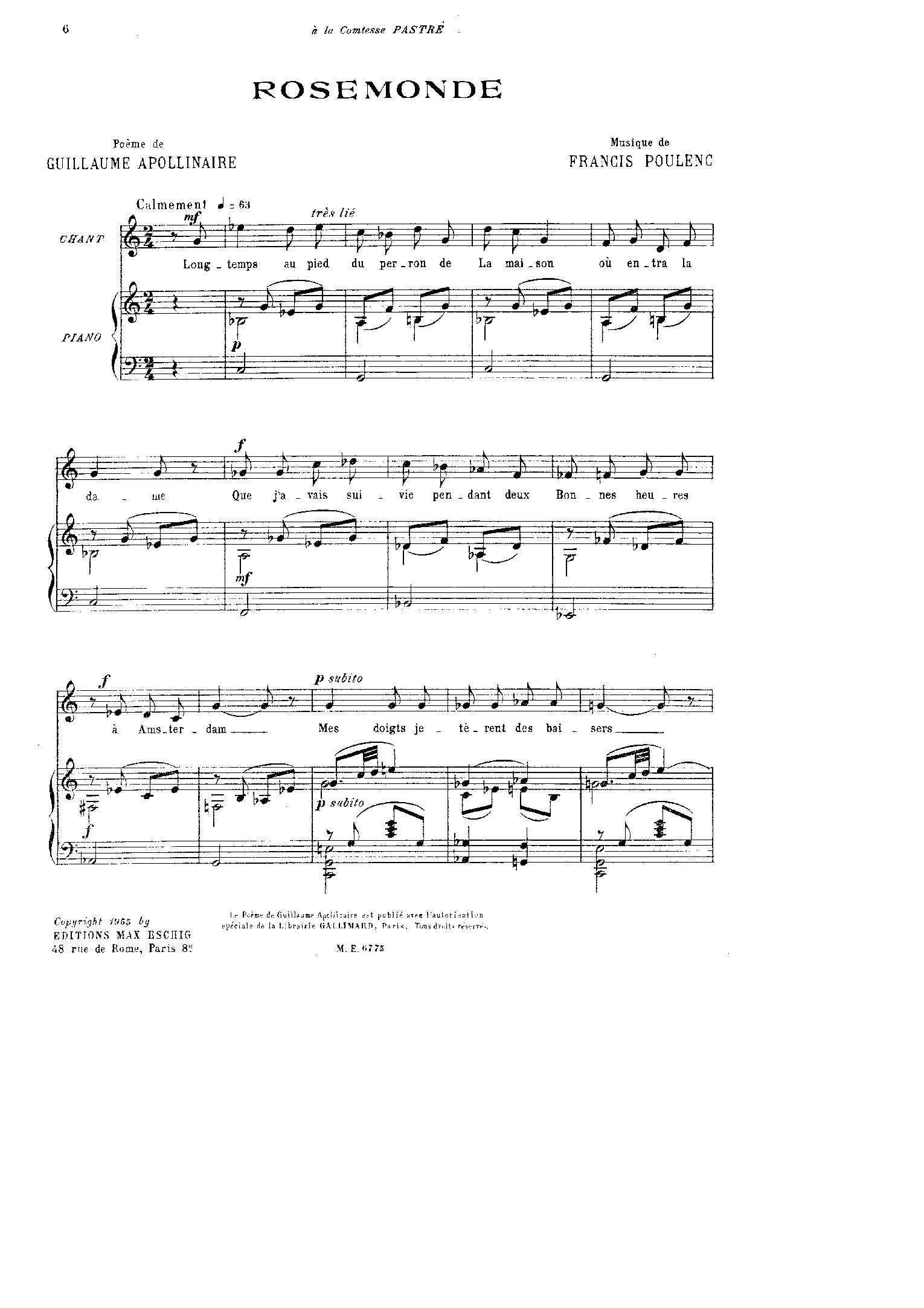 Published as no.3 of a collection of 6 miscellaneous songs : Six Mélodies pour chant et piano (en recueil)