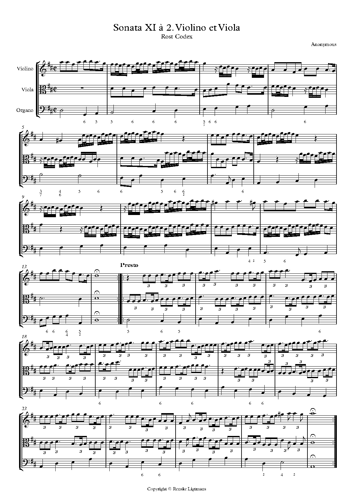- XI. Anonymous: Sonata in D major