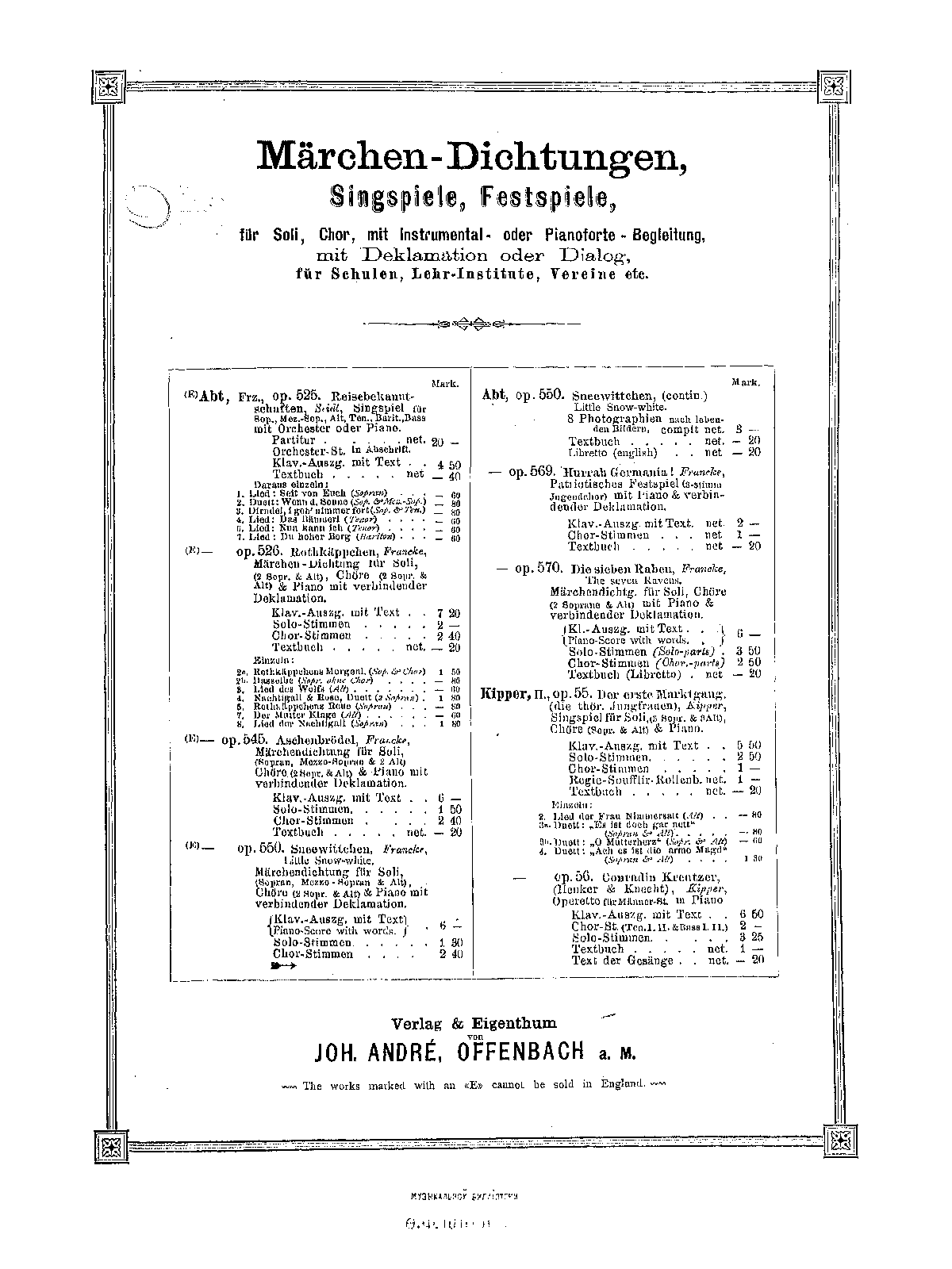 Publisher. Info. Offenbach: Johann André, n.d.[1878]. Plate 12474.
