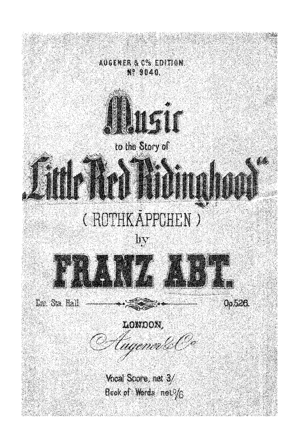 Alternative. Title Rothkäppchen. Ein Cyclus von neun durch Deklamation verbundenen Gesängen f. 2 S. u. A. (Soli u. Chöre) m. Pfte. Dichtung nach dem bekannten Märchen v. Hermann Francke.