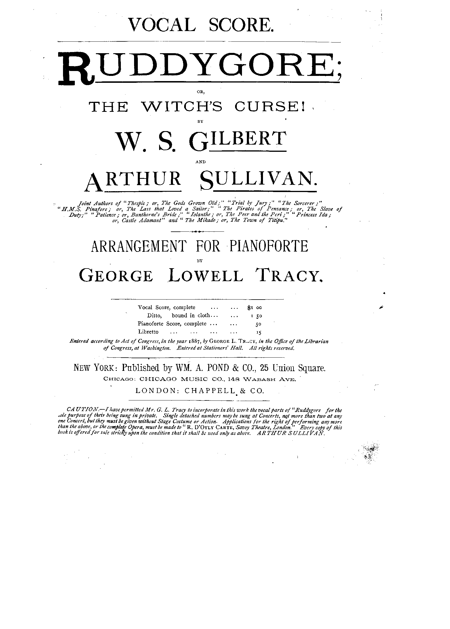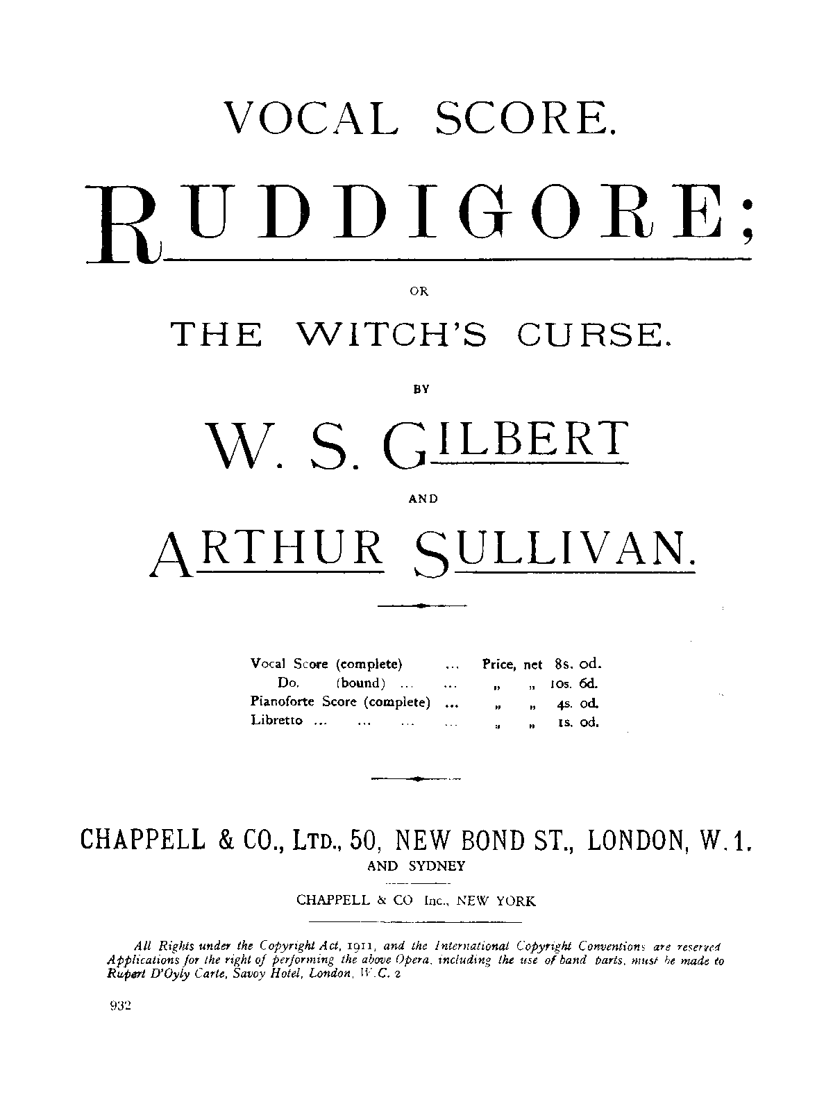 Publisher. Info. London: Chappell / D'Oyly Carte Opera Co., n.d.(ca.1920).