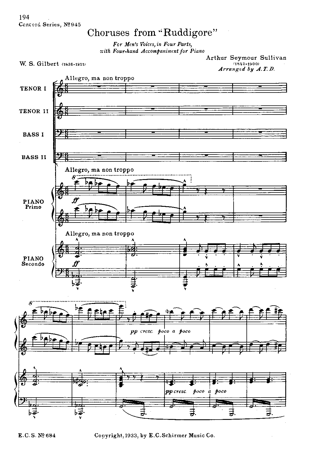 Arranger George Lowell Tracy (1855–1921), piano reduction