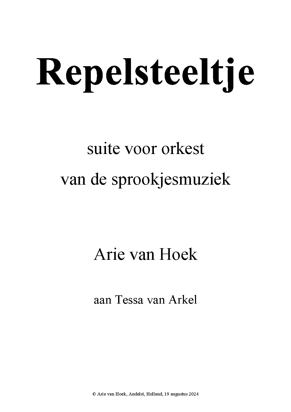 | First Performance. | Version A: 18 September 2022, Spant!, Bussum, The Netherlands, Toonkunst Orchestra Bussum, director Yiorgo Moutsiaras, narrator Louise Römer Version B: 17 April 2011, Cultureel Centrum Maldensteijn, Malden, The Netherlands, Nijmeegs Blazersensemble, director Paul Vlieks, narrator Marcel Becker |