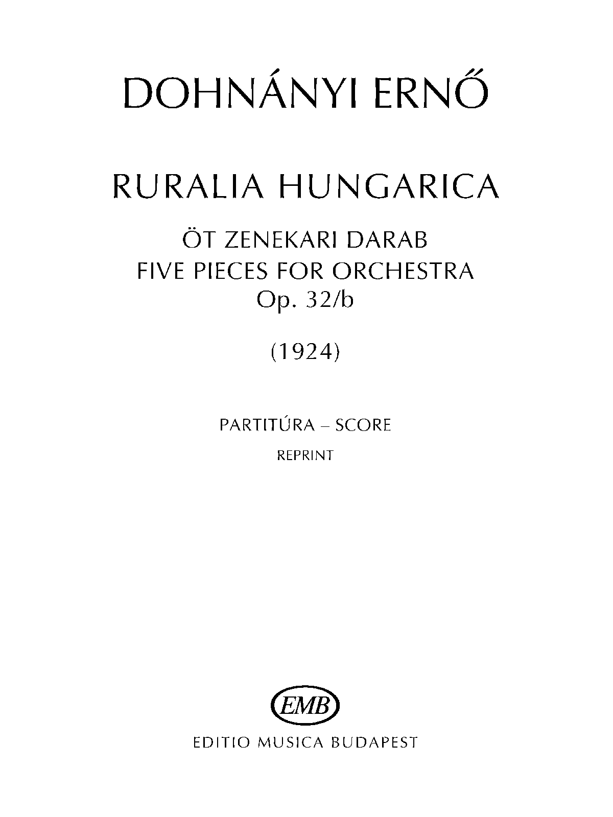 Reprinted Budapest: Editio Musica Budapest, n.d. Plate D-56/Z. 2794.