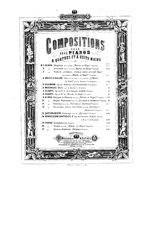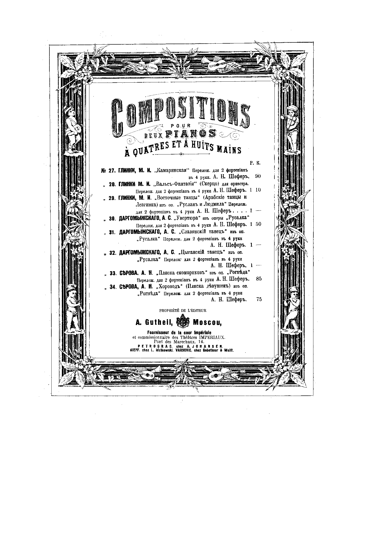 | Extra Information | Published in 1856 by whom, under what title, in what form?... Inquiring minds... An arrangement was published in 1885 by Gutheil according to HMB but one knows that a lot of Russian publishing doesn't get caught by HMB or Worldcat or etc. - so RSL.ru is handy here... specifics, too. - ES |