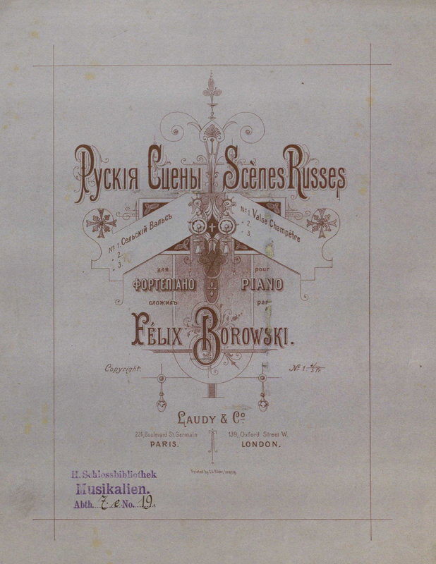 No.1 only was reviewed, with the two Schoumka piano pieces, in the February 1, 1896 Musical Times, London. One is left in some doubt as to whether Nos. 2 and 3 were in fact issued? - Schissel (Pazdirek 1904(?) does list 3, but see above: we have the other two already. Arguably the Valse champetre should be separated out and Scènes russes/Ruskija sceny/Russian Scenes put in "Collections".)