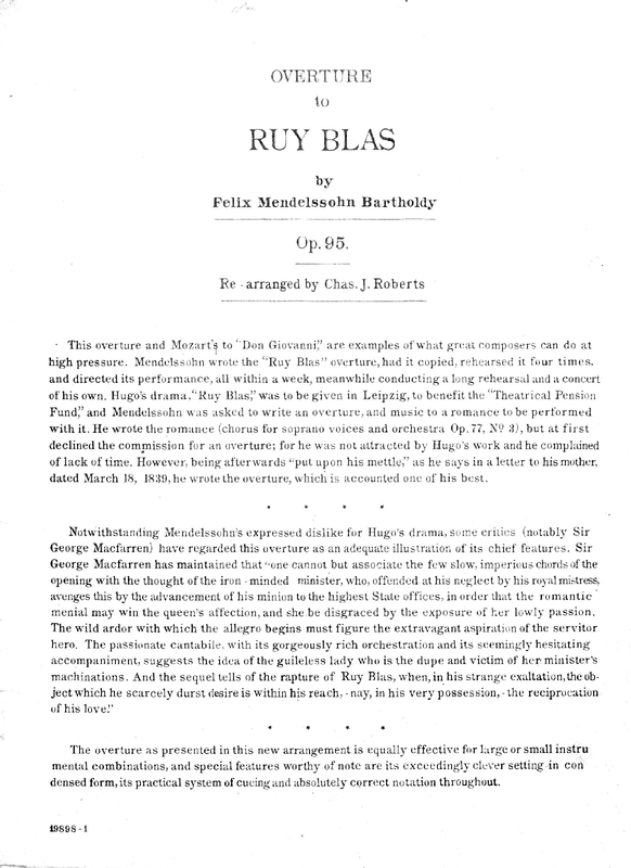 | Extra Information | Possibly? probably? written for Victor Hugo's play Ruy Blas premiered 1838. |