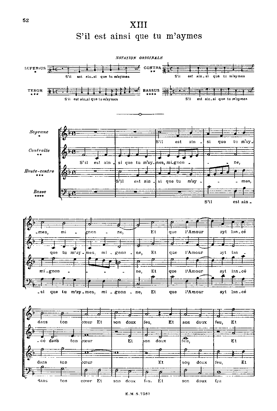 | First Publication | 1578 in Troisiemme livre de chansons (No.13) |