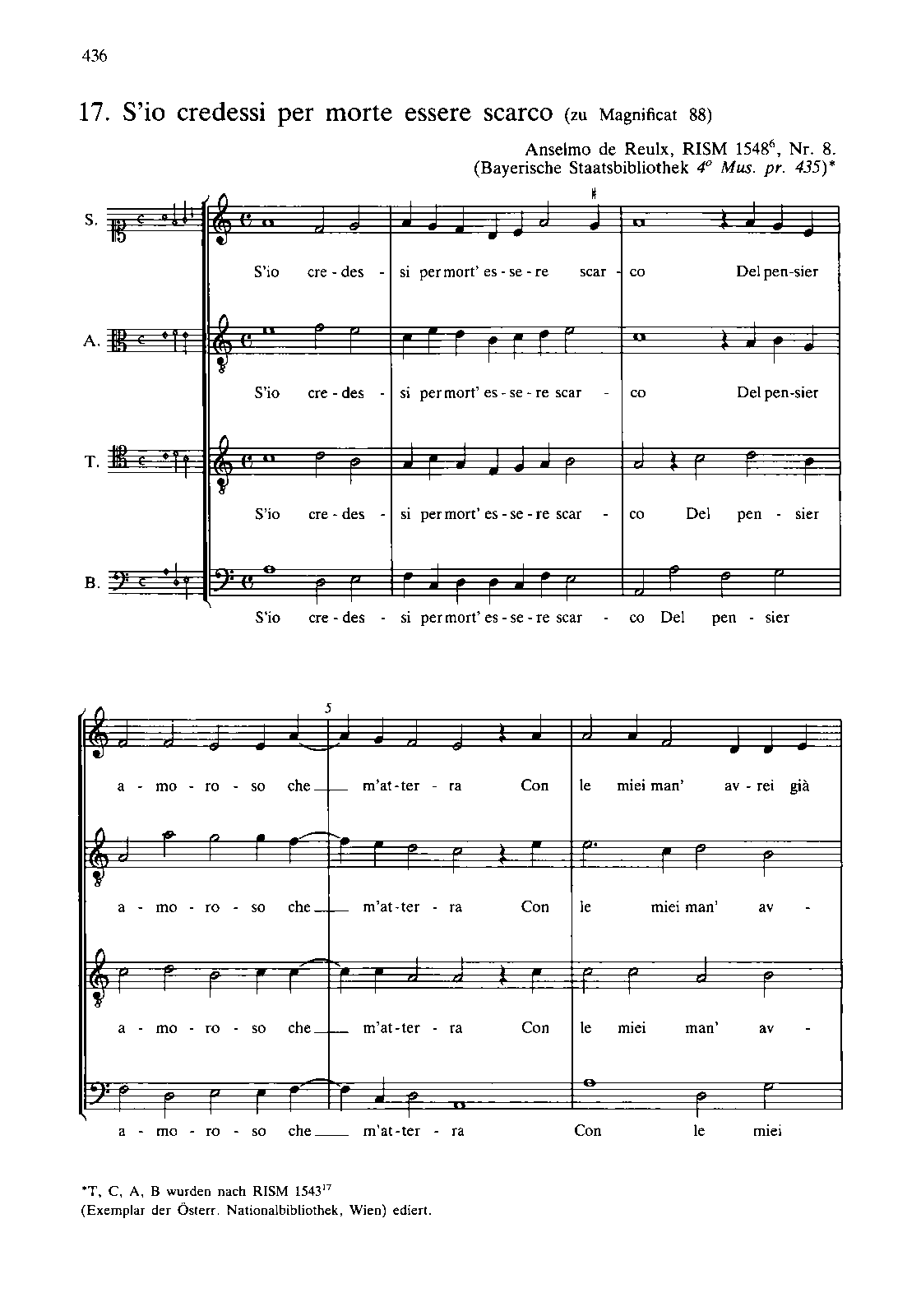 S'io credessi per morte essere scarco (Reulx, Anselmo de)