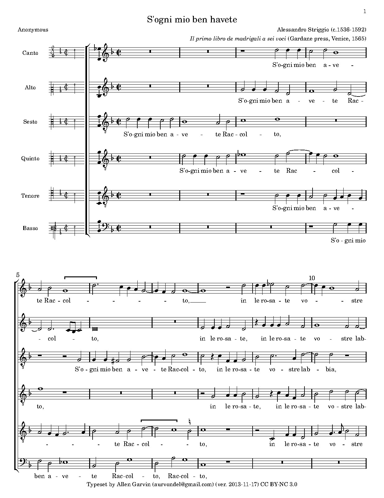 | First Publication | 1565 in Madrigali a 6, Libro 1 (no.14) |