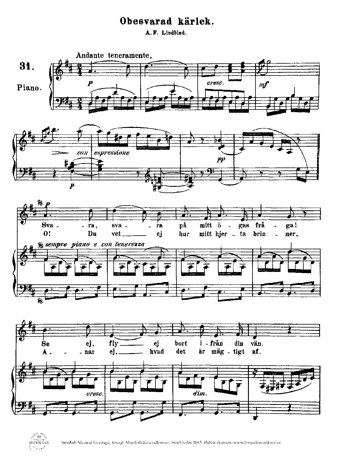 - 31. Obesvarad kärlek. Andante teneramente (D major)