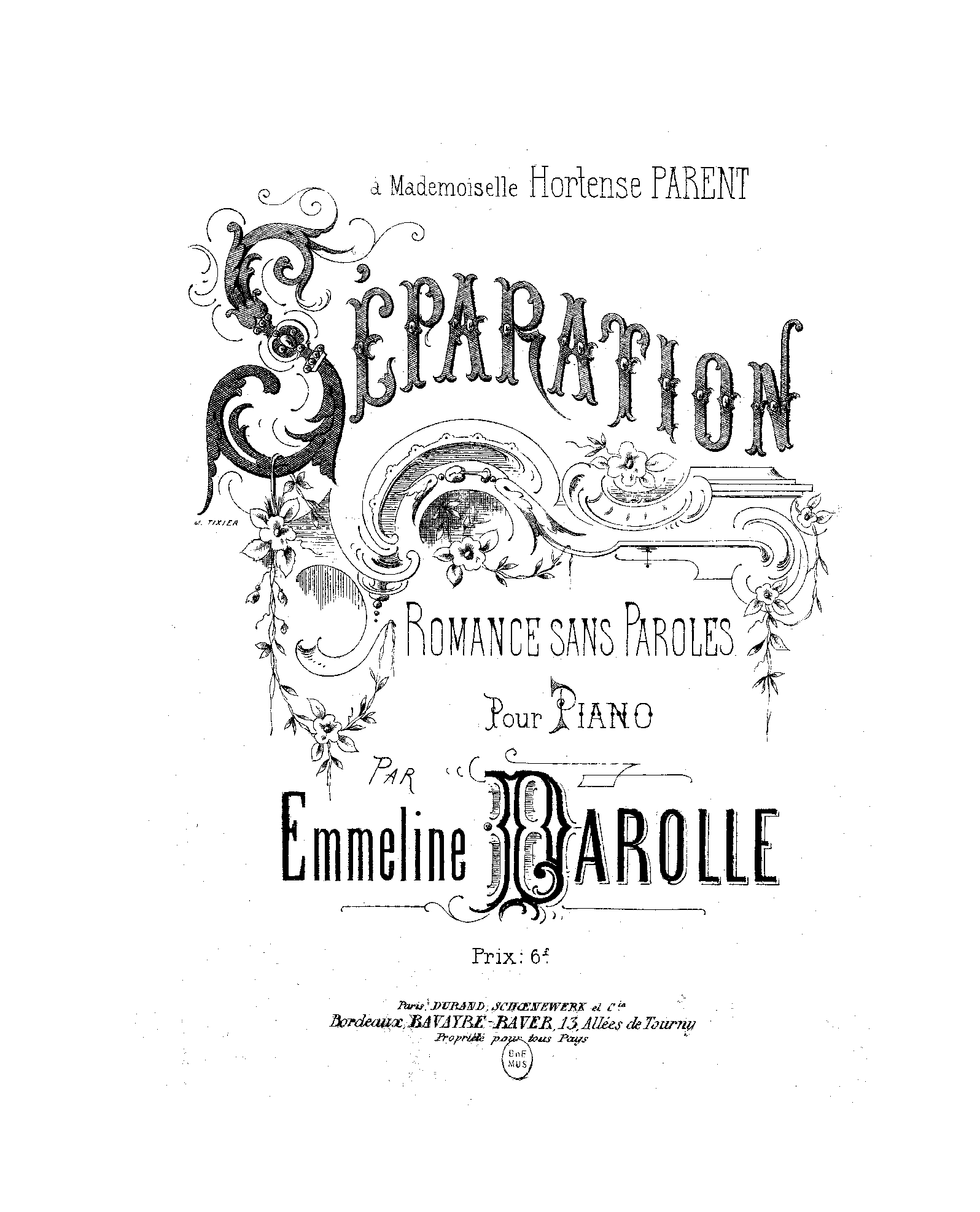 | Dedication | à Mademoiselle Hortense Parent |