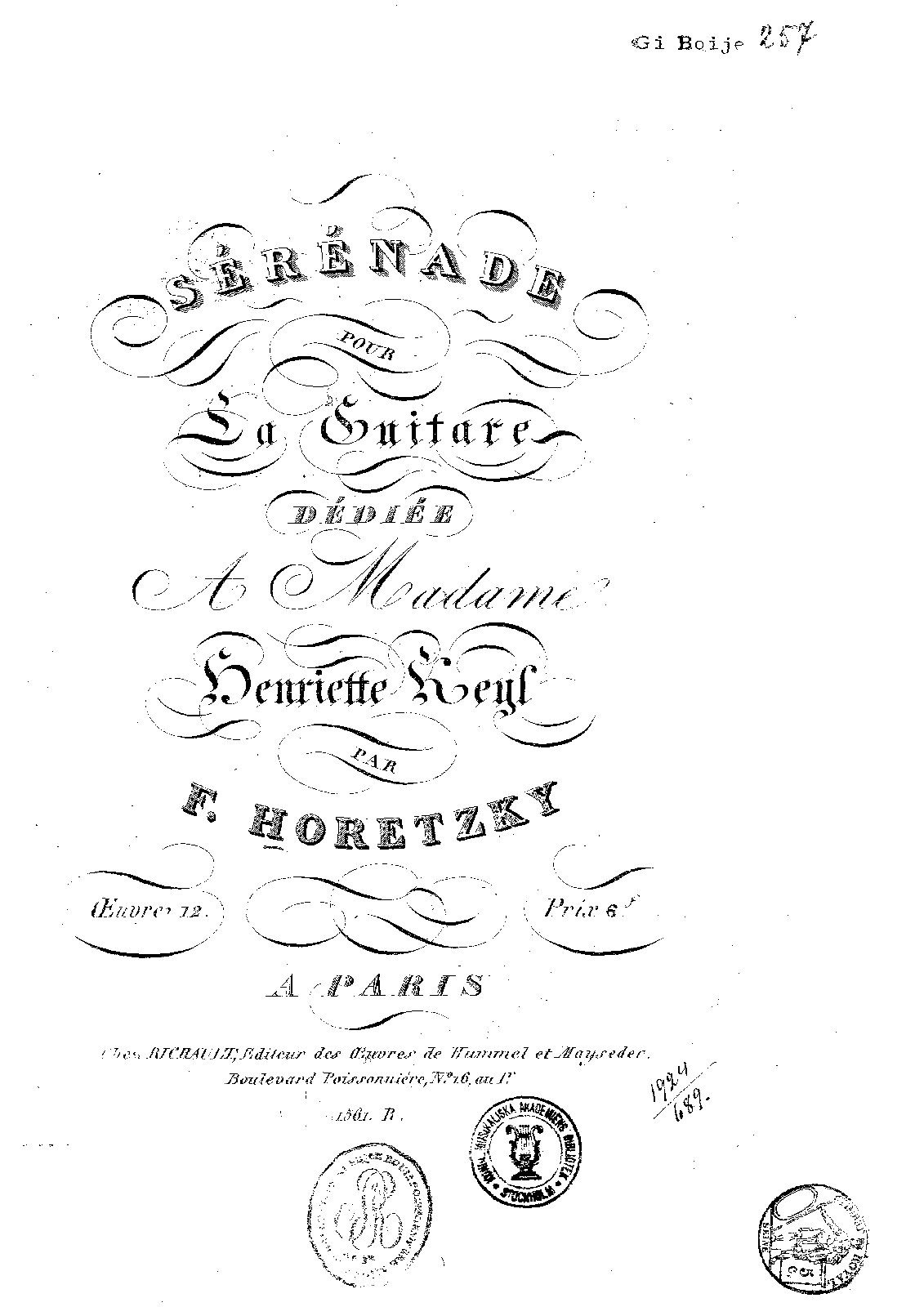 | Genre Categories | Serenades; For guitar; Scores featuring the guitar; For 1 player |