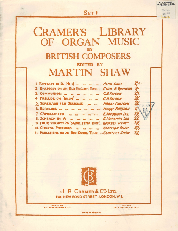 | Genre Categories | Serenades; For organ; Scores featuring the organ; |