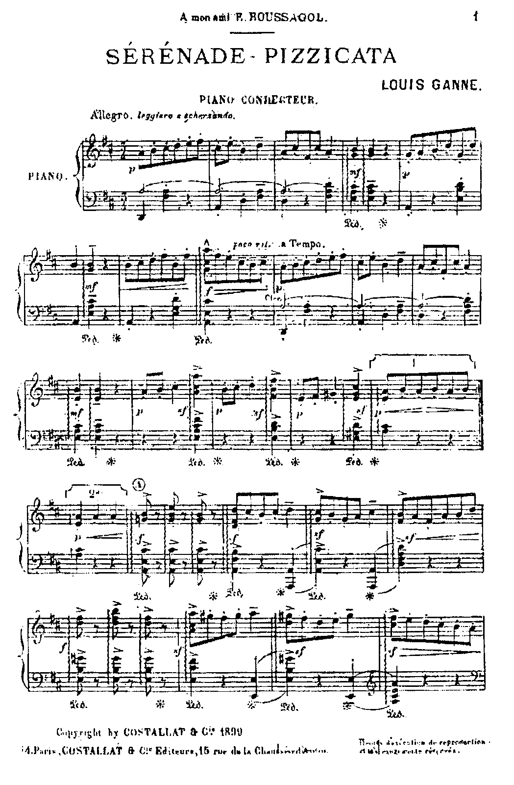 (An orchestral version also published in 1899, also with piano conducteur part, also by Costallat. Publication noted in the Bibliographie de la France 2e série, 88e année, Nº 42, 21 Octobre 1899, p.682, r.4618.
