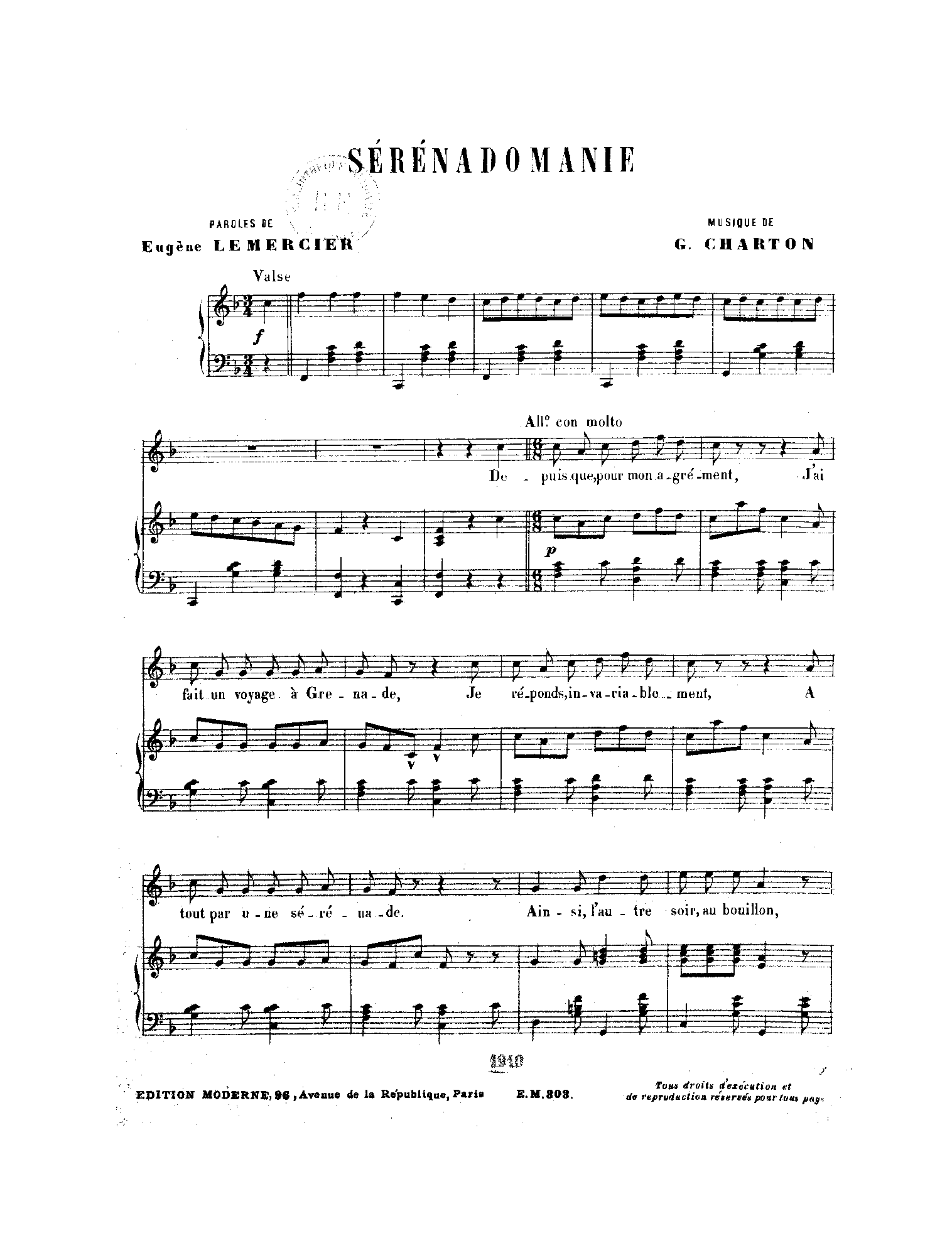 | Genre Categories | Chansons; Songs; For voice, piano; |