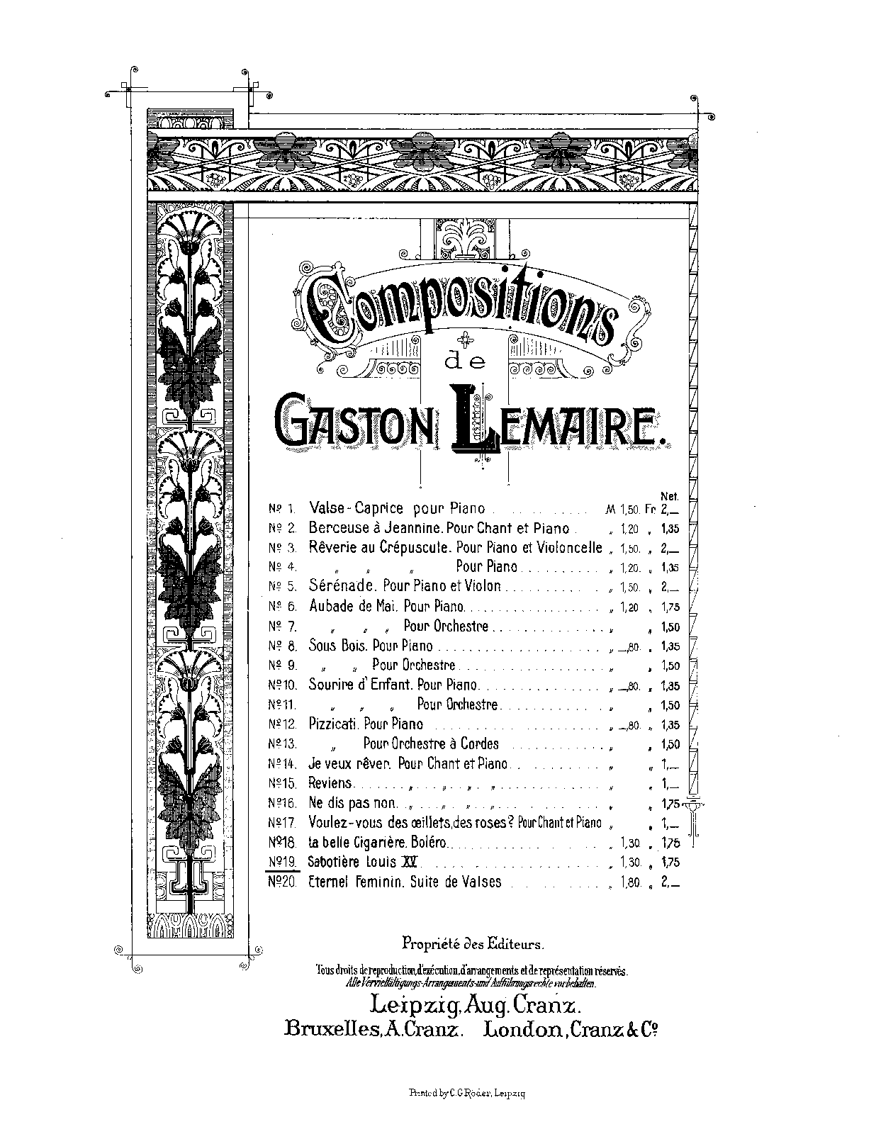 Leipzig: August Cranz, n.d.[1901]. Plate C. 40274.
