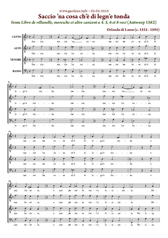 | First Publication | 1582 in Libro de villanelle, moresche et altre canzoni (No.5) |