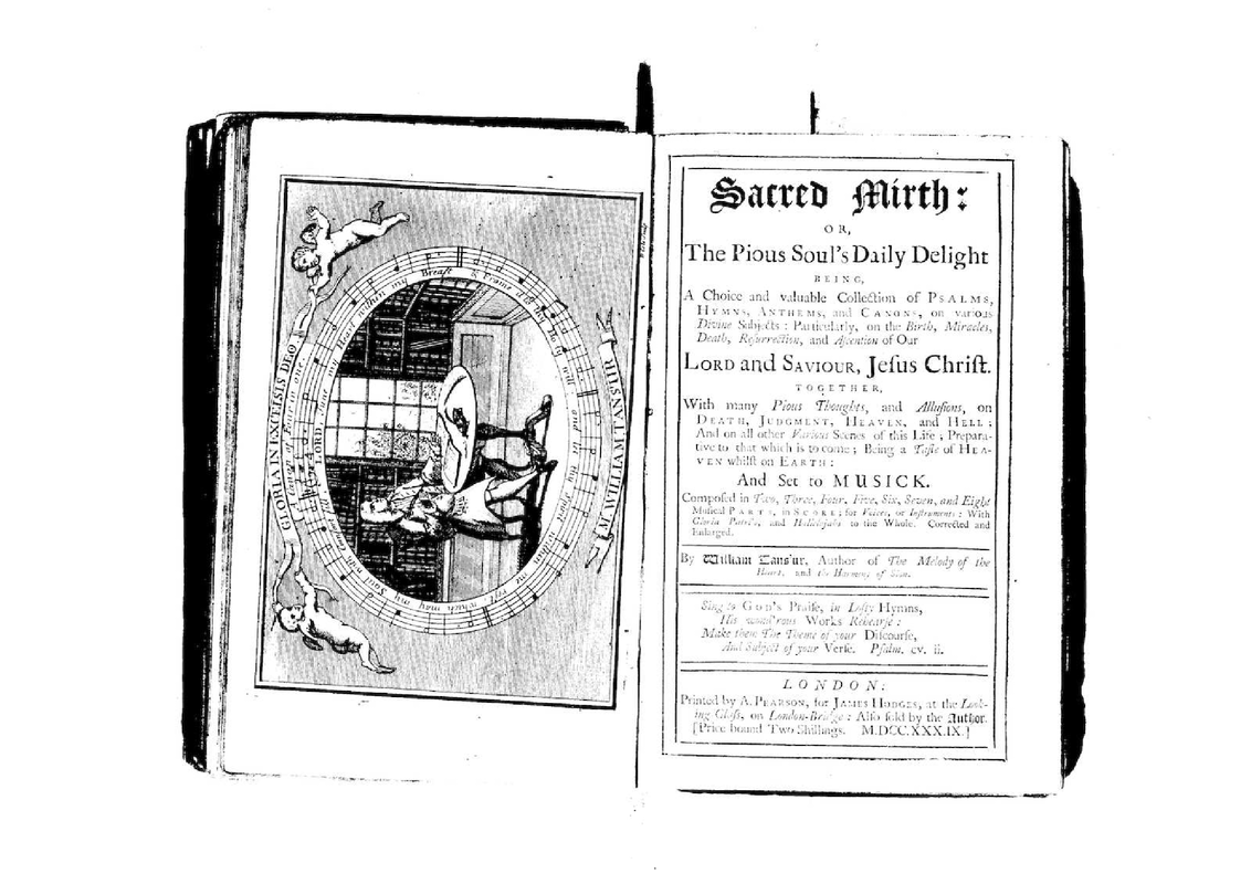 Sacred mirth: or, the pious soul´s daily delight. Being a Choice and valuable Collection of Psalms, Hymns, Anthems, and Canons, on various Divine Subjects: Particularly on the Birth, Miracles, Death, Resurrection, and Ascension of Our Lord and Saviour, Jesus Christ. Together with many Pious Thoughts, and Allusions, on Death, Judgment, Heaven, and Hell; And on all other Various Scenes of this Life; Preparative to that which is to come; Being a Taste of Heaven whilst on Earth: And Set to Musick. Composed in 2, 3, 4, 5, 6, 7, and 8 Musical Parts, in Score, for Voices, or Instruments: With Gloria Patris, and Hallelujahs to the Whole.