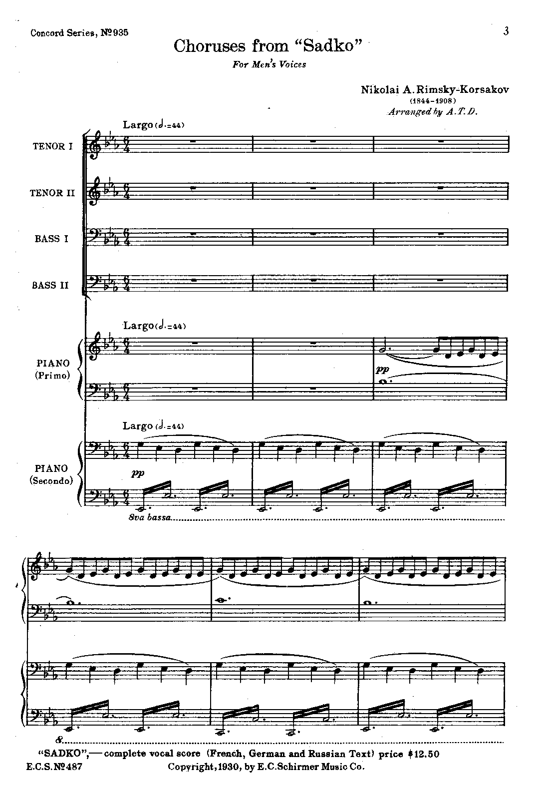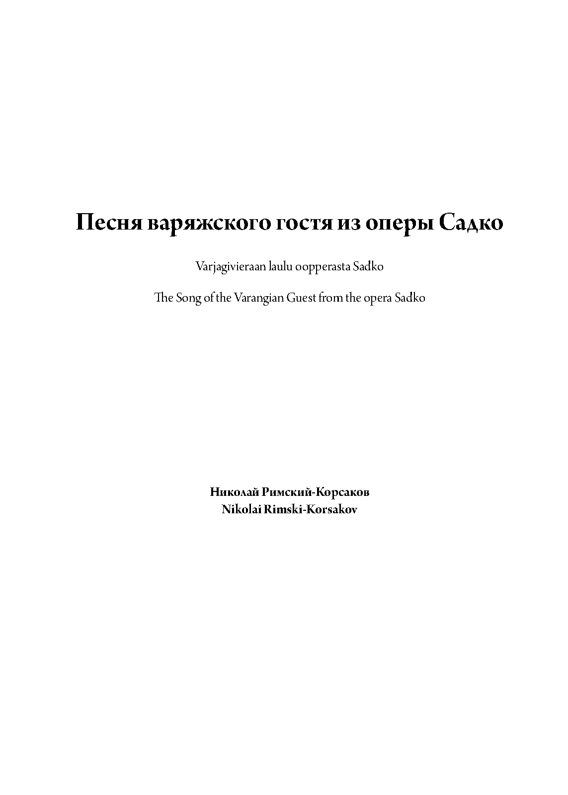 Extra Information Vocal score also arranged by Rimsky-Korsakov.