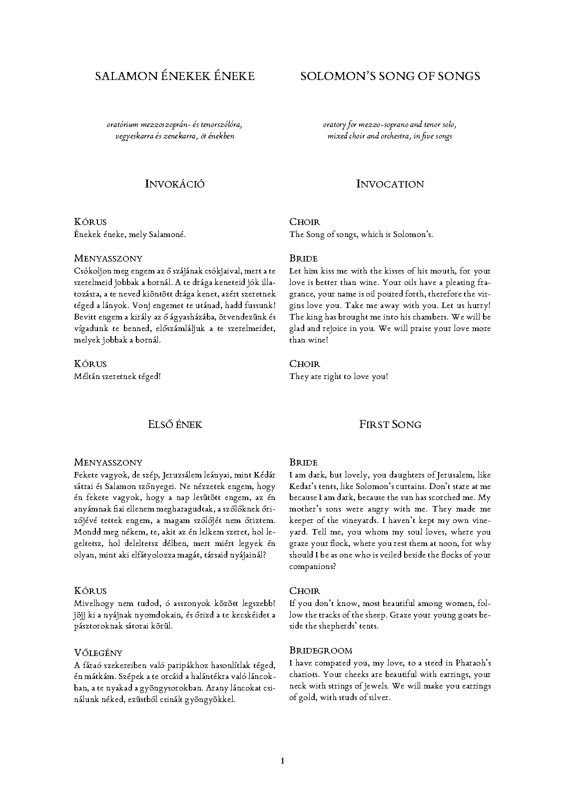 | Alternative. Title | oratory for mezzo-soprano and tenor solo, mixed choir (SMATBarB) and orchestra, in five songs |