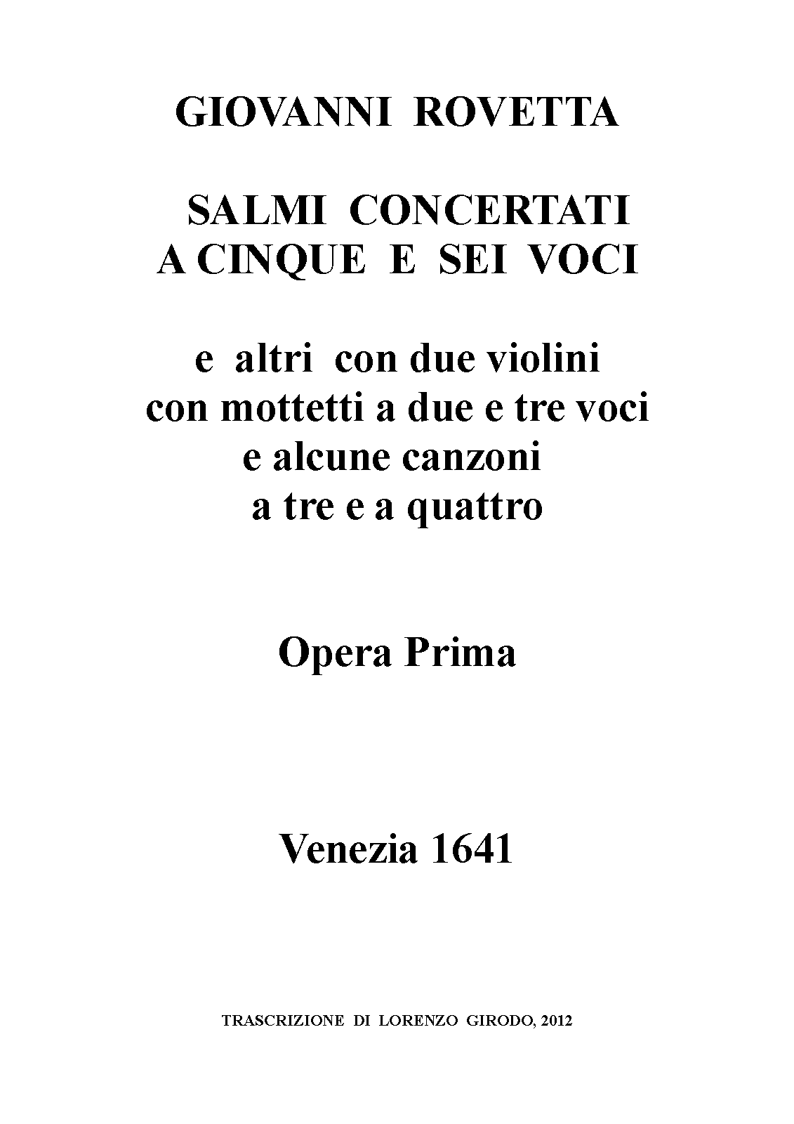 Op.1 ; RISM A-I: R 2962 (1626), 2963 (1641)