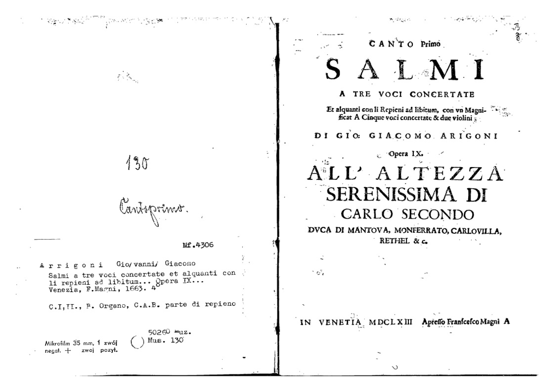 Salmi a tre voci concertate et alquanti con li repieni ad libitum, con un Magnificat a cinque voci concertate & due violini