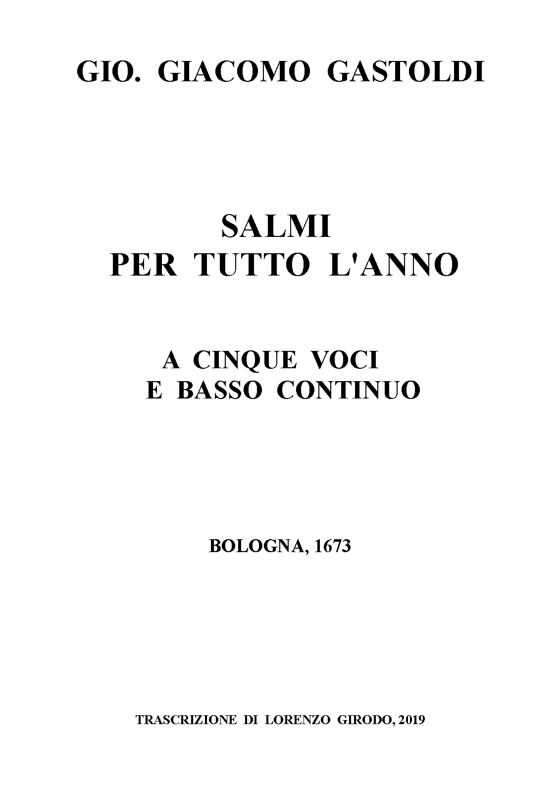 | Work Title | Salmi per tutto l'anno a cinque voci |