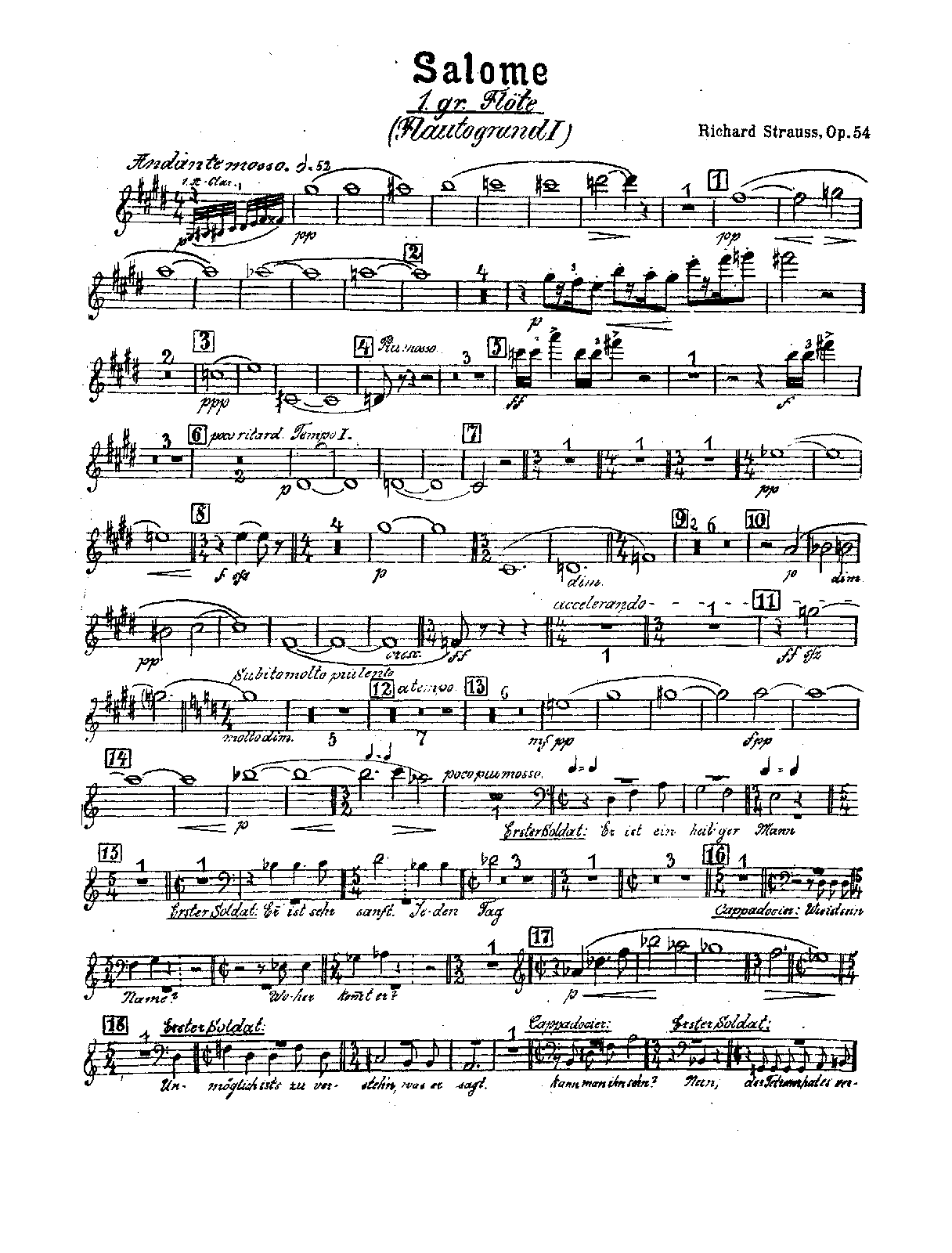 ⇒ 14 more: Oboe 1, 2, English Horn, Heckelphone • Clarinet 1, 2 (A), 3, 4 (B♭), / Bass Clarinet (B♭), Piccolo Clarinet (E♭) • Bassoon 1, 2, 3, Contrabassoon • Horn 1, 2, 3, 4, 5, 6 (F, E) • Trumpet 1, 2 (B♭, E), 3, 4 (C/E/D) • Trombone 1, 2, 3, 4, Tuba • Timpani, Piccolo Timpani, Triangle/Castanets, Glockenspiel, / Xylophone/Tambourine, Snare Drum, Bass Drum/Cymbals, Tam-Tam • Celesta • Harp 1, 2 • Violins I (A, B) • Violins II (A, B) • Violas (A, B) • Cellos (A, B) • Basses