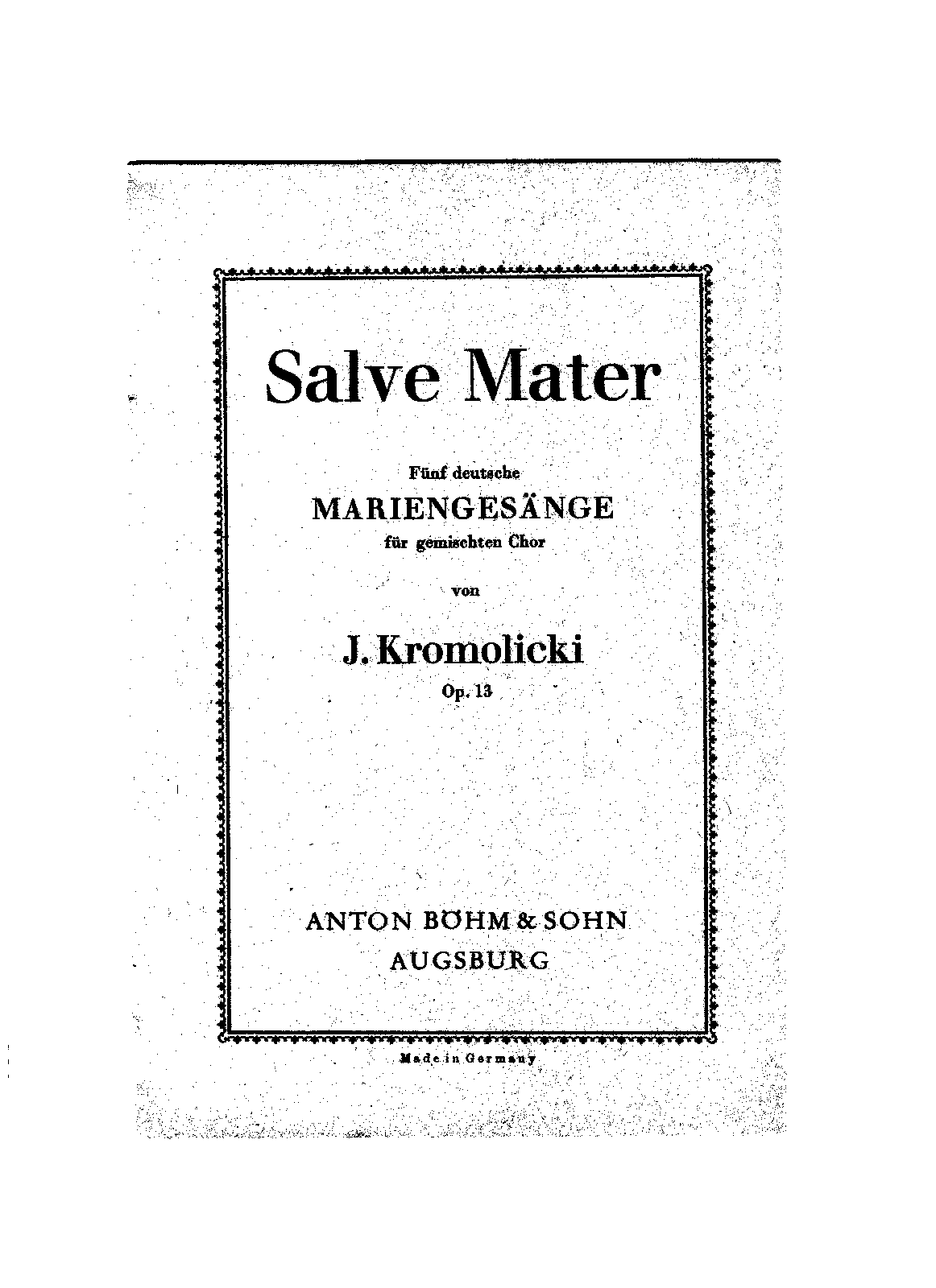 Salve Mater, Op.13 (Kromolicki, Joseph)