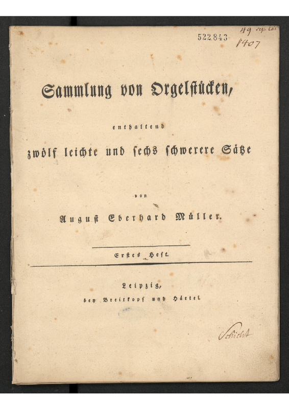 | Alternative. Title | Sammlung von Orgelstücken, enthaltend zwoelf leichte und sechs schwerere Saetze |