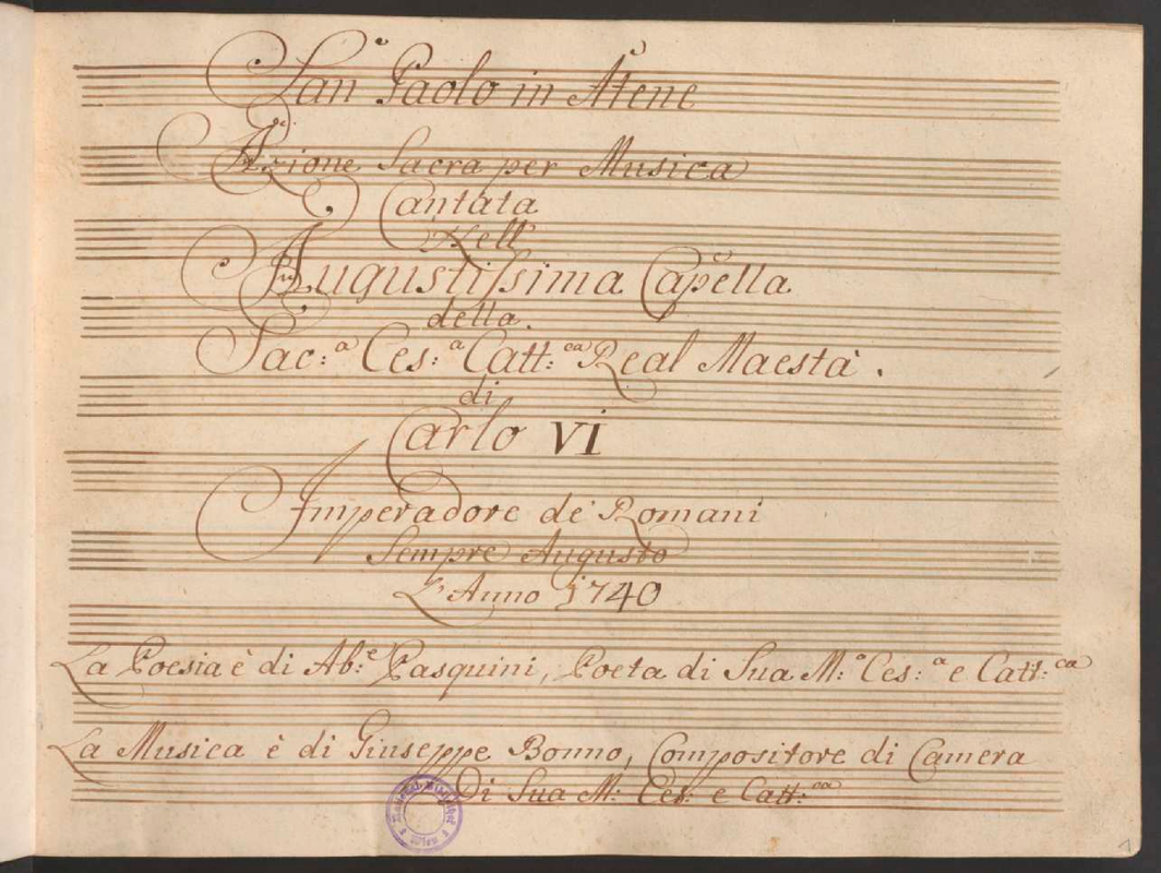 San Paolo in Atene. Azione sacra per musica cantata [...] l'anno 1740.
