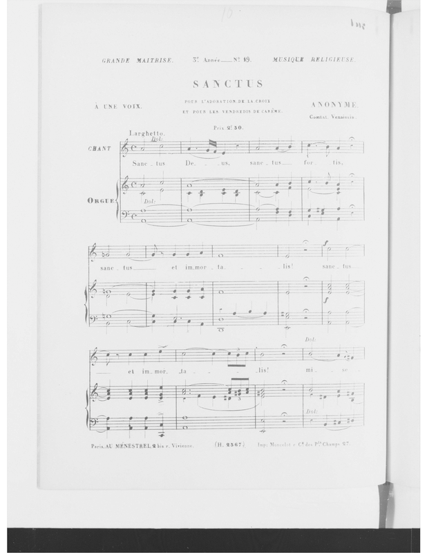 La Maîtrise, Grand Maîtrise, 3e. Année, No. 19 Paris: Heugel et Cie., [1859-60]. Plate H 2367.